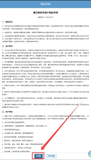 1、启动软件后,请您务必仔细阅读平台提供的用户隐私声明全文内容。