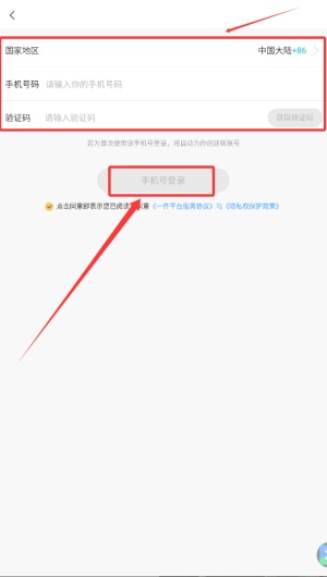 3、输入手机号并点击获取验证码,填写验证信息完成登录。