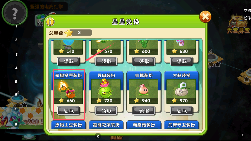 4、兑换道具后,返回关卡场景使用新得到的功能或植物,同时继续挑战更多关卡积累星星,进而兑换更高级的植物、装扮等物品,增强关卡挑战的配置选择。