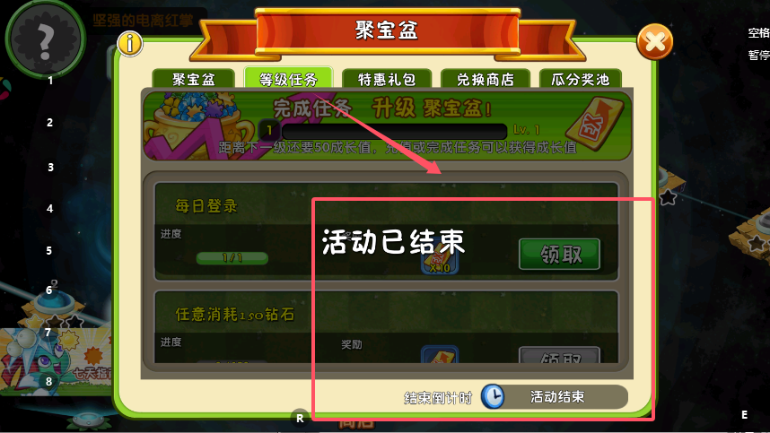 3、进入等级任务页面,完成每日登录、消耗钻石等任务积累成长值,成长值达到要求后聚宝盆升级,升级后可解锁更多权益,任务进度会清晰展示完成状态。