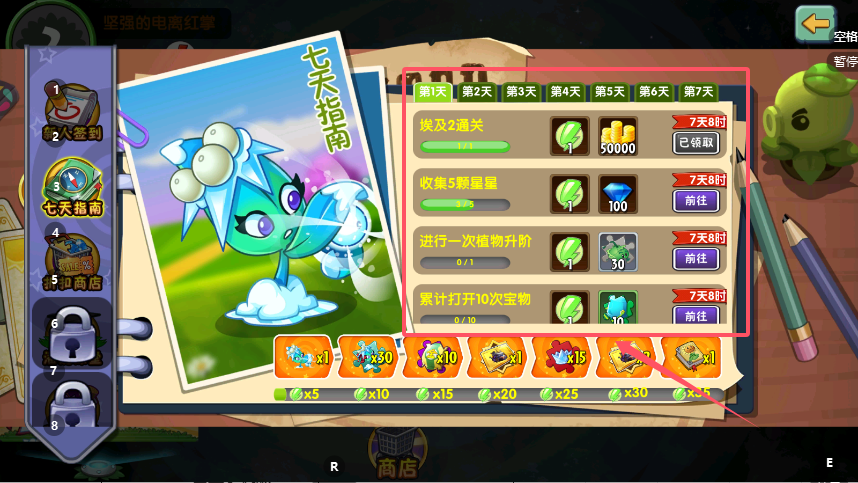 2、“超值商店”作为稀有植物的核心兑换渠道,需合理规划每日所得钻石,建议优先换取豌豆射手等高性价比基础植物以巩固阵容,再考虑特殊功能角色。