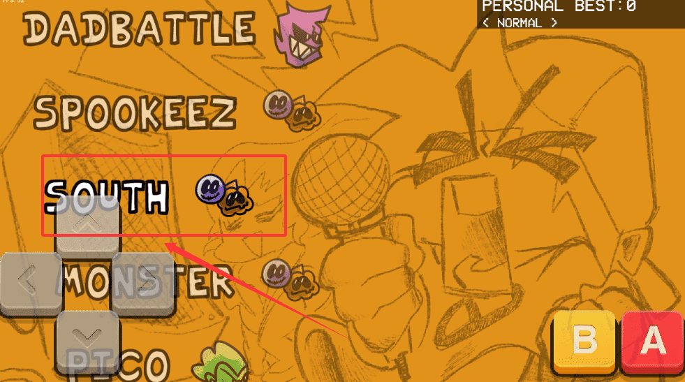 1、使用方向键或对应的操作键上下移动光标来选择你想挑战的曲目,比如从“SPOOKEEZ”开始,然后按下确认键进入难度选择。