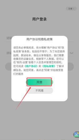 1、首次启动软件时,请点击同意用户协议以进入登录页面。