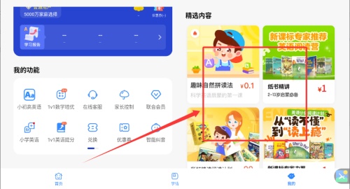 2、进入软件首页,点击对应入口选择英语类型课程。