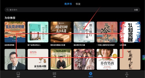 1、进入软件首页后,请在底部任务栏中点击“有声书”图标。