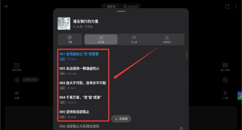 4、若书籍分章节,可点击选集按钮选择特定章节倾听。