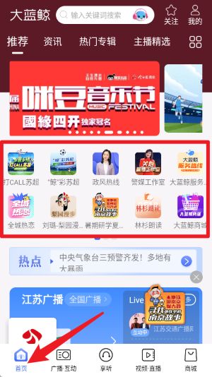 1、在首页界面可浏览推荐、资讯及热门专辑等内容,点击相应栏目可进入相关节目与功能模块。