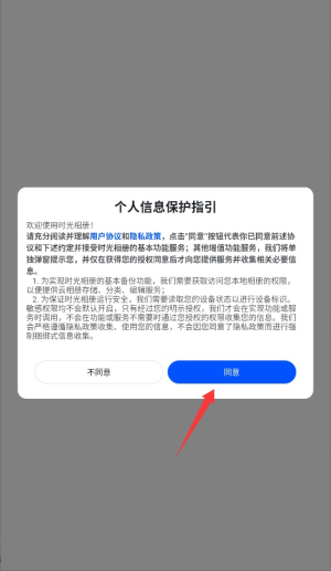 1、首次启动应用时,系统会显示用户协议和隐私政策,阅读后点击同意按钮进入主界面。