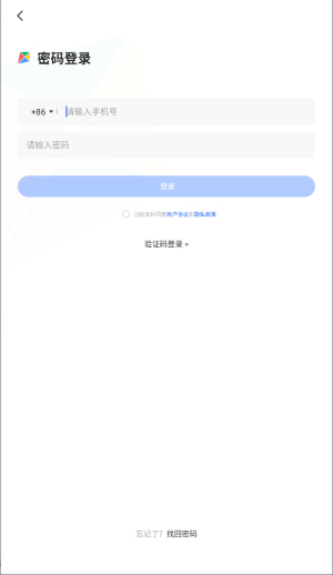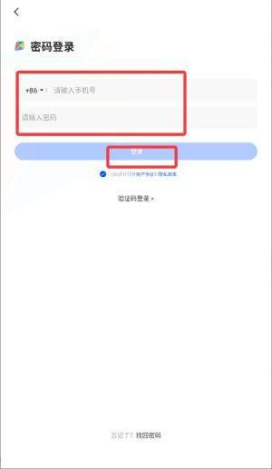 4、输入已注册的手机号码与对应密码信息,点击登录按钮完成账户验证。