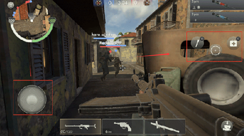 3、二战前线1942游戏开始后,左下角遥感操控角色的移动,右边控制方向、射击、治疗、等操作。