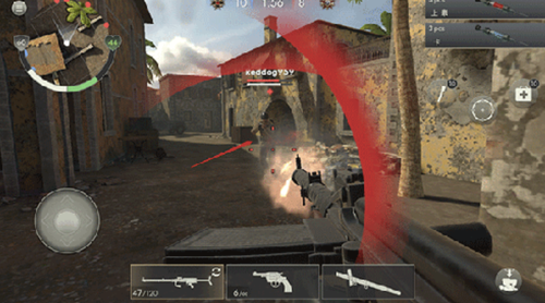 4、遇见敌人时将枪的准心瞄准敌人后,点击右边空白处即可射击。