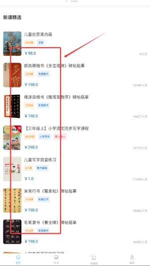 小学书法写字课程 :涵盖了小学同步课程、硬笔书法基础课程、硬笔书法专题课程、硬笔书法单字视频课程。