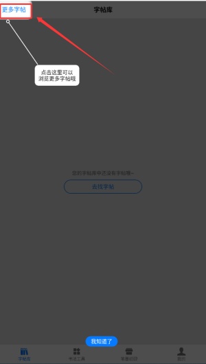 2、在字帖功能区点击“查看更多”选项,浏览并选取更多可用字帖资源。