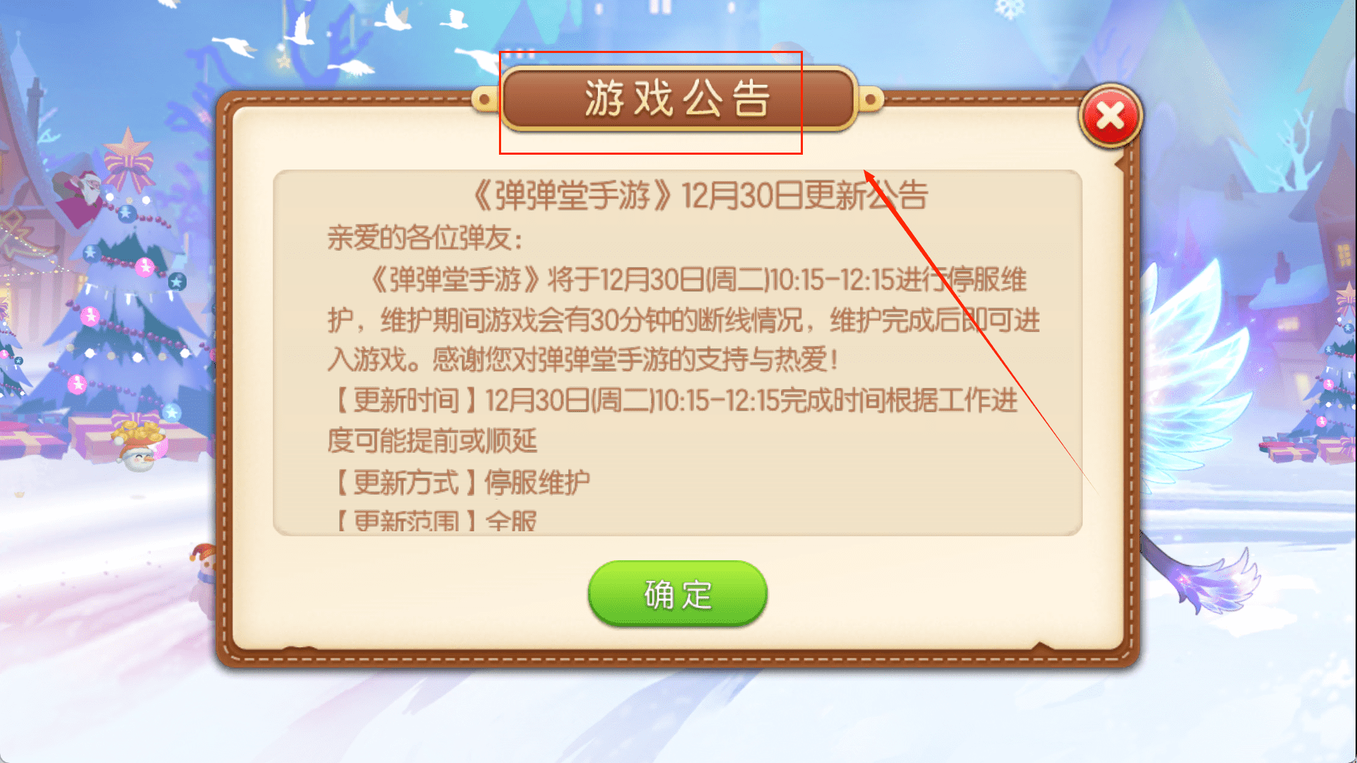 4、完成登录选择后,有时会看到游戏公告,提醒维护时间。最后,在开始玩耍前,花一秒看看底部版本号,并检查协议同意框是否已勾选,这是保证顺利游戏的小细节。