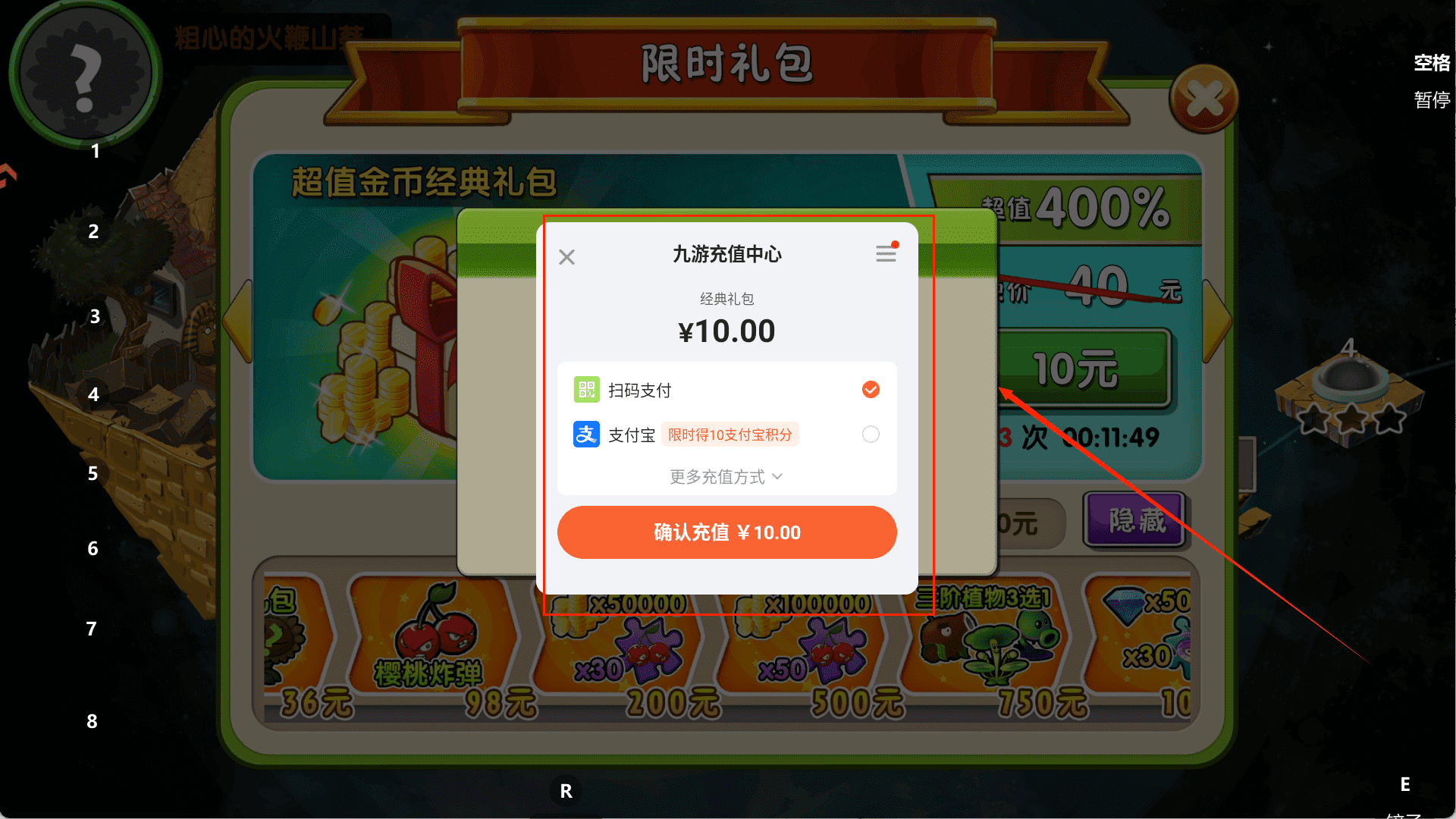 2、点击购买后,游戏会调用“九游充值中心”的接口,弹出一个窗口让你付钱,这里你按提示操作就好。