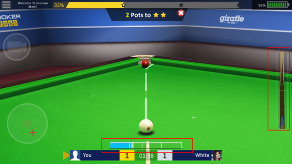 3、拉动右边屏幕红槽可以调整击球的力度;