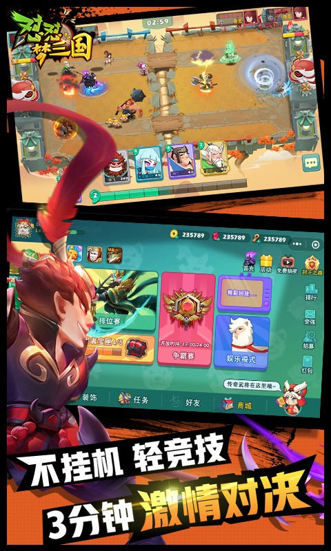 怼怼梦三国主要是以经典三国题材为主来制作的卡牌策略类手游,怼怼梦三国整款游戏的画风充满着浓浓的Q版卡通元素搭配上轻松的放置玩法,让你可以在游玩时可以很好的释放自己的压力。在怼怼梦三国中,你可以通过签到和完成主线任务来获取丰厚的奖励,使用奖励来招募你喜欢的三国名将。如果感兴趣的话,那就来下载体验一下。