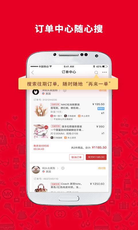 【订单搜索】:哈尼们在订单中心,可以通过宝贝名称搜索到您曾经下过的订单哟~
