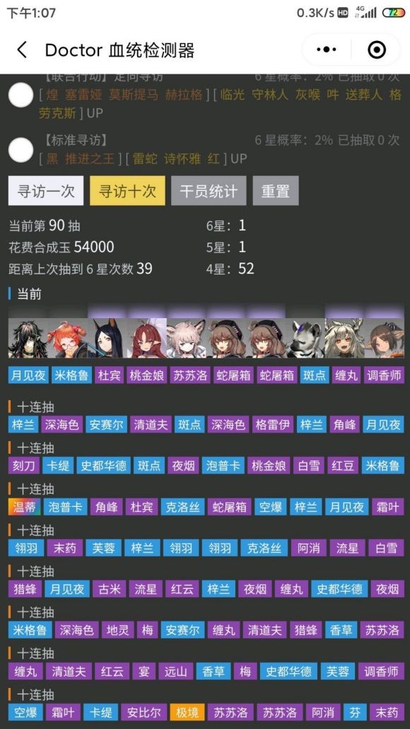 最有意思的是寻访模拟器,可选择近期卡池随意抽卡,鉴定血统