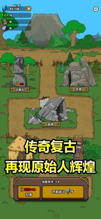 1.丰富多彩的游戏闯关场景,每个原始人也有自己独特的装备。