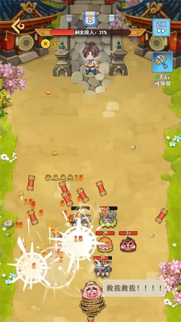 弹弹西游以西游为故事背景展开全新的冒险挑战模式,在弹弹西游中你将会运用武器作为你的弹球手段,利用一定的策略将武器反复在怪物之间相互碰撞弹跳,击溃敌军救出人质。