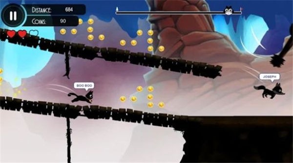 快乐猫大冒险游戏玩法相对来说还是比较轻松有趣的,游戏玩法跟忍者类的跑酷玩法比较类似。游戏会比较考验玩家的即时反应能力,在跳过障碍物的同时,还要尽可能多的收集金币。