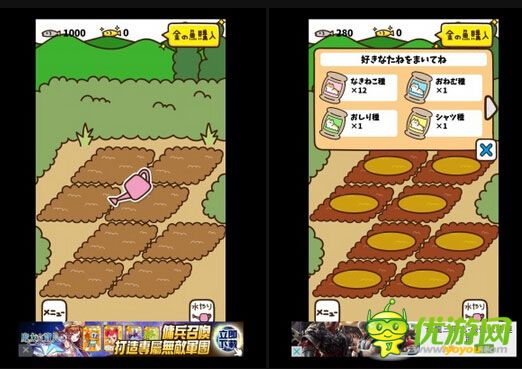 种田游戏不稀奇,但是用猫罐头当种子就可以把猫种出来,有时候还会出现猫咪的朋友唷!《猫咪田园》是款放置养成类型的游戏,玩家只要种下各种不同的罐头就可以得到猫咪罗,猫咪出现后还有机会看到前来拜访的朋友,来看看自己会种出哪些可爱的猫咪吧。保持田园的湿润,才能让猫咪拥有良好的成长环境游戏要怎么玩呢?大多时间