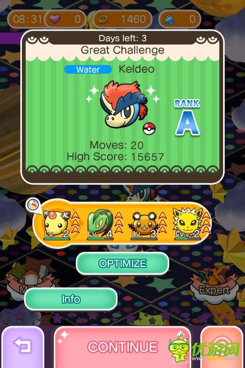 口袋消消乐水马怎么抓;口袋消消乐抓水马心得;捕获水马的队伍如图,同时买了1800的道具和一个超级球(建议存9000左右金币)。第一次通水马关,打了A,剩余10步,捕获率22%没有抓到,然后捕获率升至54%,3500买了一个超级球抓到了(要是没抓到我就怨念了,又要刷喵喵)
