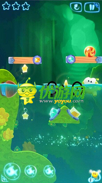 割绳子魔法第四章4-21关怎么通关;割绳子魔法第四章4-21关怎么过;割绳子魔法第四章4-21关通关攻略;先更换主角形态到达最低端时恢复形态,利用空气瓶将主角吹到圆圈1处再次更换形态开启机关,接着再重复将其吹到圆圈2处更换形态开启机关即可。