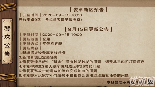 烟雨江湖9月15日更新公告