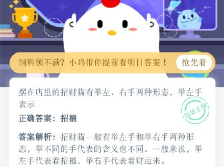 招财猫举左手表示招福还是招财?支付宝蚂蚁庄园6月26日的问题是:摆在店里的招财猫有举左、右手两种形态,举左手表示?小伙伴们知道店里的招财猫举左手表示什么吗?不知道这道题怎么选的小伙伴们一起来看看编编的答案吧!招财猫举左手表示招福还是招财蚂蚁庄园6月26日每日一题问题:摆在店里的招财猫有举左、右手两种