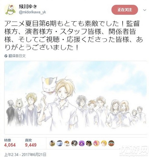 夏目友人帐第六季也在今天完结了,不少人都意犹未尽,我夏目的外公终于有点要出来的迹象了,然后这一季就完结了岂可修,那么夏目友人帐有第七季吗?夏目友人帐第七季什么时候播出?关心相关信息的观众就来看看下面的分析吧:夏目原作者在推上放出了第六季完结的祝贺不少人这才猛然惊觉这一季竟然不是12/13集,只有11