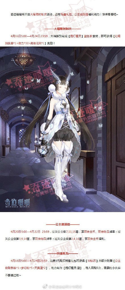奇迹暖暖大喵限时制衣活动是什么,这是奇迹暖暖即将开启的大型优惠活动,丰富的奖励和公主级双倍等你来拿哦,小编这就为大家分享下奇迹暖暖大喵限时制衣活动详细介绍,希望对大家体验游戏有帮助。奇迹暖暖大喵限时制衣活动时间4月16日5;00—4月24日23:59(各位小伙伴千万别错过时间哦)大喵指引完成【提灯精
