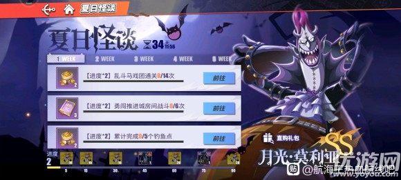 航海王热血航线夏日怪谈任务怎么做?此次活动任务包括乱斗马戏团通关14次、勇闯推进城房间战斗6次、累计完成5个钓鱼点等,这些任务大概需要2-3周完成,作为就能拿到莫利亚了,接下来就让我们一起来看看夏日怪谈任务攻略大全吧!航海王热血航线夏日怪谈攻略1、夏日怪谈任务是比较简单的,难度并不高,只是耗费一点时