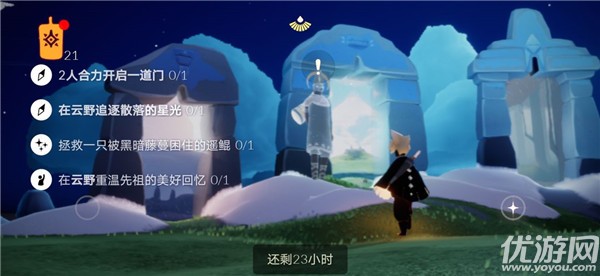 光遇2月2日今日任务怎么做?光遇国服2021年2月2日的日常任务是:2人合力开启一道门、在云野追逐散落的星光、拯救一只被黑暗藤蔓困住的遥鲲和在云野重温先祖的美好回忆。接下来就让我们一起来看看光遇国服2.2每日任务速刷攻略吧!光遇2月2日今日任务怎么做1、2人合力开启一道门;开启一扇双人门。2、在云野