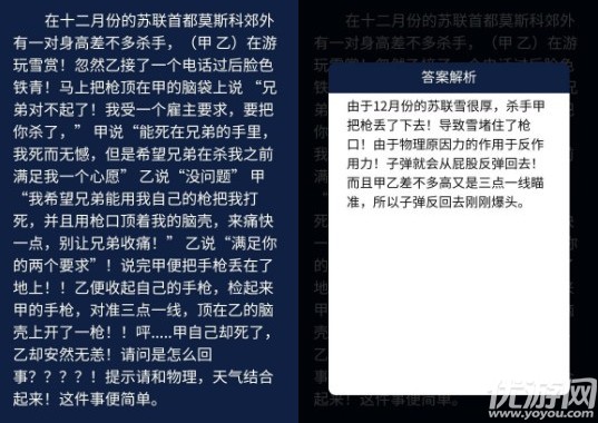 犯罪大师每日任务答案是什么?在crimaster犯罪大师游戏中有一个每日任务,我们每天可以接到5个推理题目,只要在倒计时结束之前回答正确即可获取积分奖励,超时和回答错误都是没有奖励的。下面就是犯罪大师每日任务答案大全了,一起来看看吧!犯罪大师每日任务答案大全题目在十二月份的苏联首都莫斯科郊外有一对身