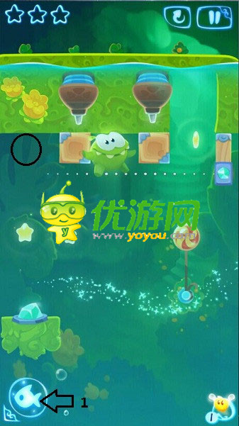 割绳子魔法第四章4-17关怎么通关;割绳子魔法第四章4-17关怎么过;割绳子魔法第四章4-17关通关攻略;先更换主角形态成功开启机关,木块会被成功推到圆圈的位置。抓住时机割断糖果的绳子,让木板成功将糖果推到左侧。当糖果到达水中右侧星星上方时挤压空气瓶获得星星,接着恢复主角形态即可。