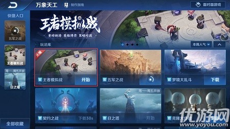 王者荣耀官方9月27日就官宣了王者模拟战即将上线正式服的消息,有网友爆料称该模式具体的上线时间就是10月17日,那么王者模拟战的入口在哪里呢?下面就是王者模拟战的进入方法了,召唤师们都来看看吧!王者荣耀王者模拟战10月17日上线玩家需要从游戏大厅进入万象天工玩法入口,然后找到王者模拟战!接下来就可以