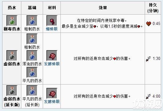 现实生活中药品可以治病救人,那么在我的世界中,药物又有哪些作用呢,各类药物应该怎么得到呢?今天小编就给大家讲讲在我的世界中药物的效果和合成方法,一起来看看吧。药水包括:笨拙的药剂、治疗药水、火焰免疫药剂、重生药剂、力量药剂、敏捷药剂、剧毒药剂、虚弱药剂、水下呼吸药水(水肺药水)药水合成表:1、笨拙的