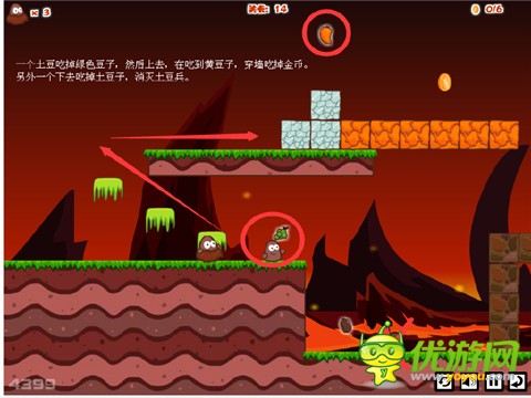 土豆父子逃亡记第十四关怎么过?土豆父子逃亡记第十四关过关技巧?接下来小编为大家详解一下:更多关卡,请点击:4399土豆父子逃亡记全关卡攻略分享然后各自吃掉一个蓝色的豆子,过去水池。