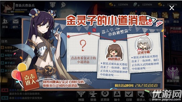镇魂街武神躯手游将于4月1日愚人节开启金灵问答玩法,活动期间每天更新3道题,所有玩家题目相同,没有答题时限,但当天题目只能在当天接取。下面就是金灵子问答题目答案汇总了,大家一起来看看吧!镇魂街武神躯金灵问答答案大全4月1日,全新活动“金灵问答”开启!小曹能有什么坏心眼,当然是要给镇魂将们准备大礼啦~