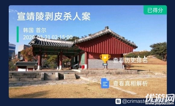犯罪大师宣靖陵剥皮杀人案凶手是谁?《宣靖陵剥皮杀人案》是游戏中的突发案件之一,该案发生在韩国首尔的宣靖陵公园,很多玩家都不知道这起案件背后隐藏着怎样的故事,下面就是crimaster宣靖陵杀人案答案了,一起来看看吧!犯罪大师宣靖陵剥皮杀人案凶手是谁《宣靖陵剥皮杀人案》的凶手是郑贤宇。》》》crima