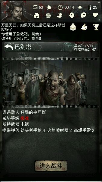 以下就是小编为大家带来的死亡日记2全剧情流程通关攻略分享:【第一章】开局就一命中天赋,按教程把工具箱和床给造好,出门干副本。有土豆回家的话立马种下,电台也顺便干掉,打到路口可以凑到棉衣的材料,回家造好你接下来可以硬扛丧尸。消防斧最好赶紧造出来,少吃一点伤害也好,并且可以开箱子。子弹咋说你第一章也用不