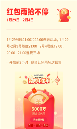 今日头条春节红包雨怎么领?今日头条的春节红包雨是最近推出的福利活动,玩家们可以在指定的时间内去抢红包,而且此次活动持续的时间较长。下面小编就来给大家介绍下春节红包雨领取方法。今日头条春节红包雨领取方法介绍新春红包雨活动将从2019年1月29日晚上21:00正式开始,当天在晚21:00和22:00可以