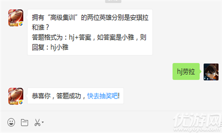 拥有“高级集训”的两位英雄分别是安琪拉和谁?答题格式为:hj+答案,如