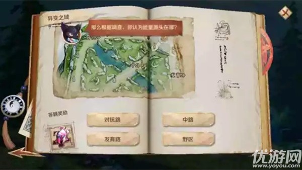王者荣耀能量源头在哪里?王者荣耀异变之域中有一道题是:那么根据调查,你认为能量源头在哪?一定还有很多玩家不知道游戏中的能量源头在哪条道上吧,下面就是王者能量源头位置介绍了,小伙伴们一起来看看吧!王者荣耀能量源头在哪里问题:那么根据调查,你认为能量源头在哪?A、对抗路B、中路C、发育路D、野区答案:对