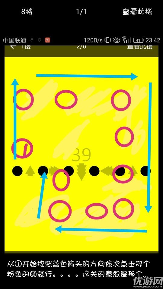 yellow游戏39关怎么过?yellow游戏39关图文攻略、是不是好多小伙伴不知道、那些还不知道的小伙伴快来和小编一起看看首先随便点一下这个位置为基点,根据箭头方向在基点的方向上点箭头的次数,以此类推。点一圈从第一个上面开始点从一点到十。