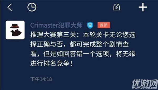 犯罪大师推理大赛第三关答案是什么