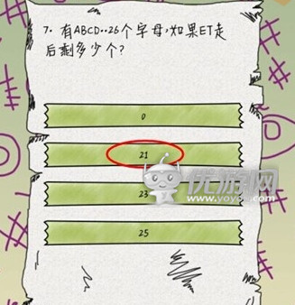 【坑爹么么答】第7关怎么过;坑爹么么答第7关图文详解;坑爹么么答第7关图文攻略;坑爹么么答全部关卡通关图文:第七题:ET走了会开着UFO的,少了五个就是21