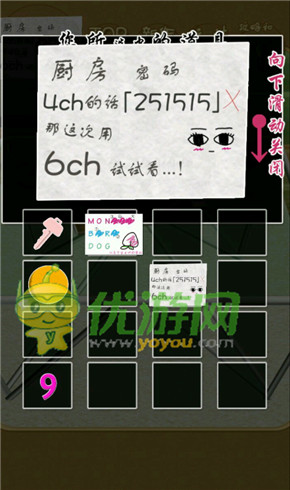 猫咪逃脱汉化版是一款解谜类逃脱游戏,主角是一只不让人省心的猫咪,因为主人外出,留有一只猫咪在家,这只猫咪就想方设法的要离开这件密室!接下来小编为大家带来猫咪逃脱游戏第二题答案详解:第二题4ch句子中是GOGOSANGOGOSAN按照发音就是553553根据字条提示的乘法就是251515所以6ch就是